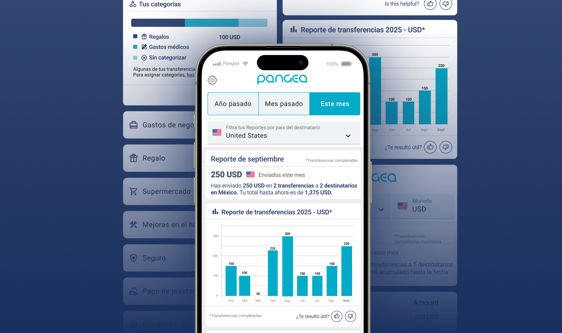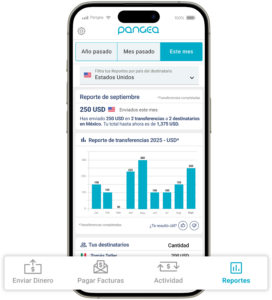 Los Reportes de Pangea son una función dentro de tu app de Pangea que te ayuda a entender tus transferencias a lo largo del tiempo. Reúnen automáticamente tus transferencias completadas en resúmenes claros, para que puedas ver cómo se van sumando tus envíos.