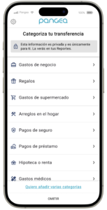Después de enviar, puedes seleccionar una categoría para darle a tus Reportes más contexto. Esto ayuda a que los resúmenes y gráficos muestren con mayor claridad para qué se utilizó tu dinero.
